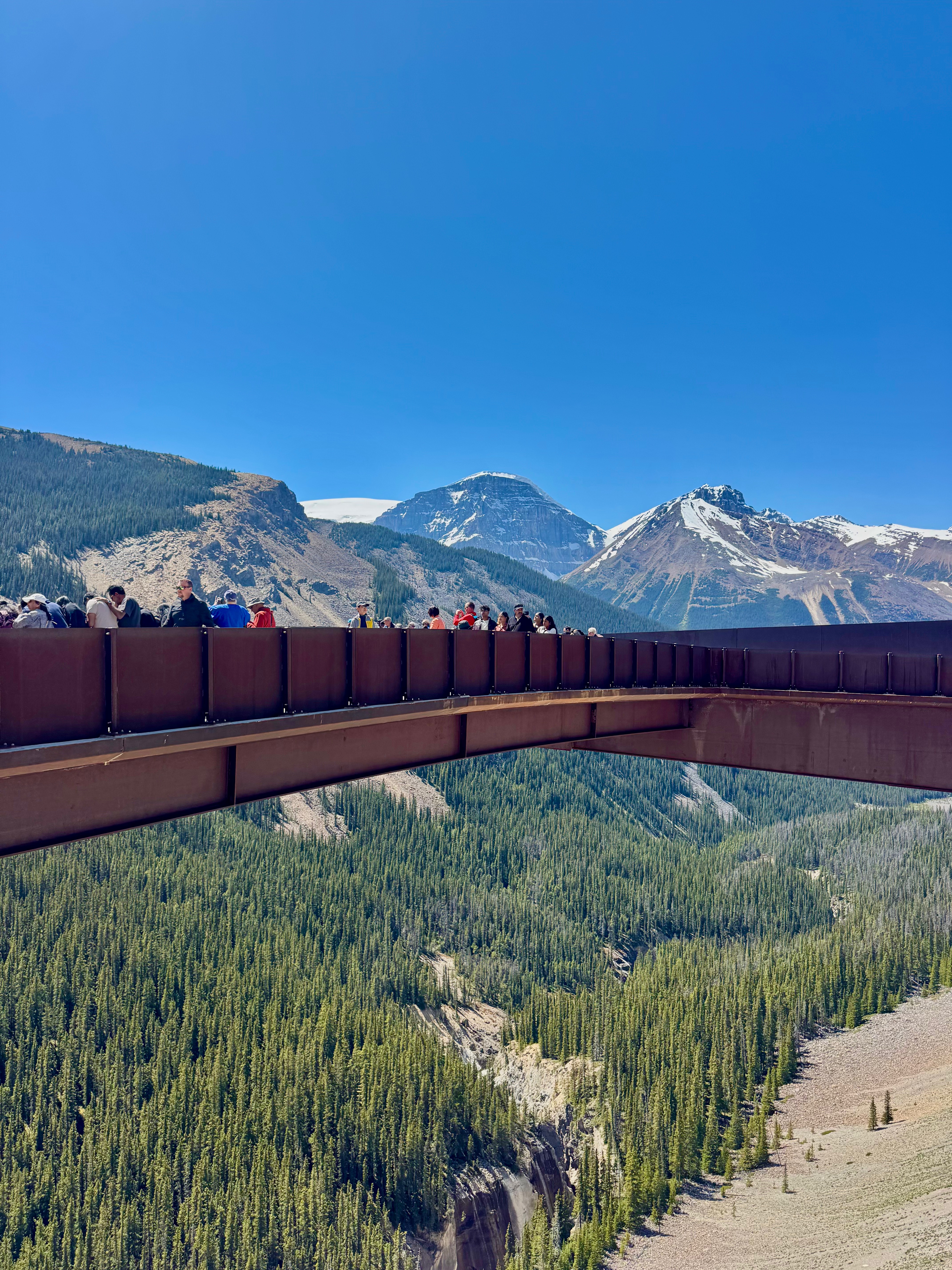 Next up was the Glacier Skywalk. If you’re into adrenaline-pumping moments, you’ll love walking across the glass-floored platform suspended above the Sunwapta Valley. The panoramic mountain views are absolutely mind-blowing.